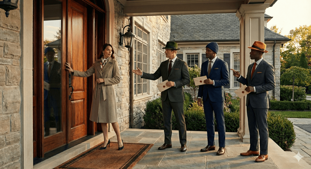 Consider Sally, a lonely woman who answers her door to find three men, each wearing a different colored hat. The green-hat man claims his friend Jim loves her deeply and is with her at that moment, urging her to sense his presence. The blue-hat man insists his friend Jack is always with her, needing only her belief. The orange-hat man asserts his friend Jake is standing behind her bedroom curtains, hoping for her belief. When Sally attempts to verify by pulling back the curtain, the men protest, suggesting she should feel his presence instead. They each offer her a love letter from their respective friends, urging her to believe without direct evidence.