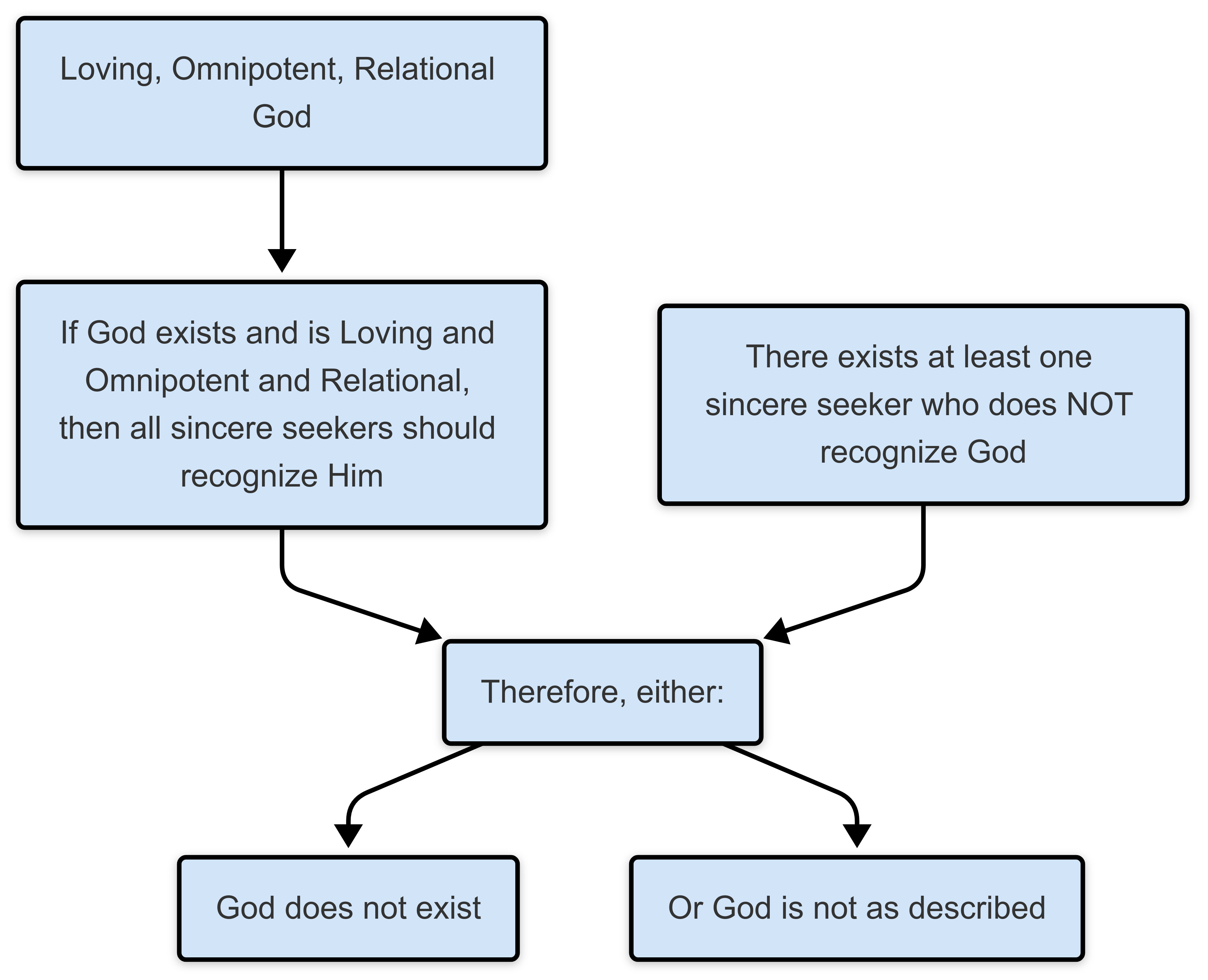 - Premise 1: If a personal God exists and desires a relationship with each individual, he would reveal himself in a clear, direct manner.