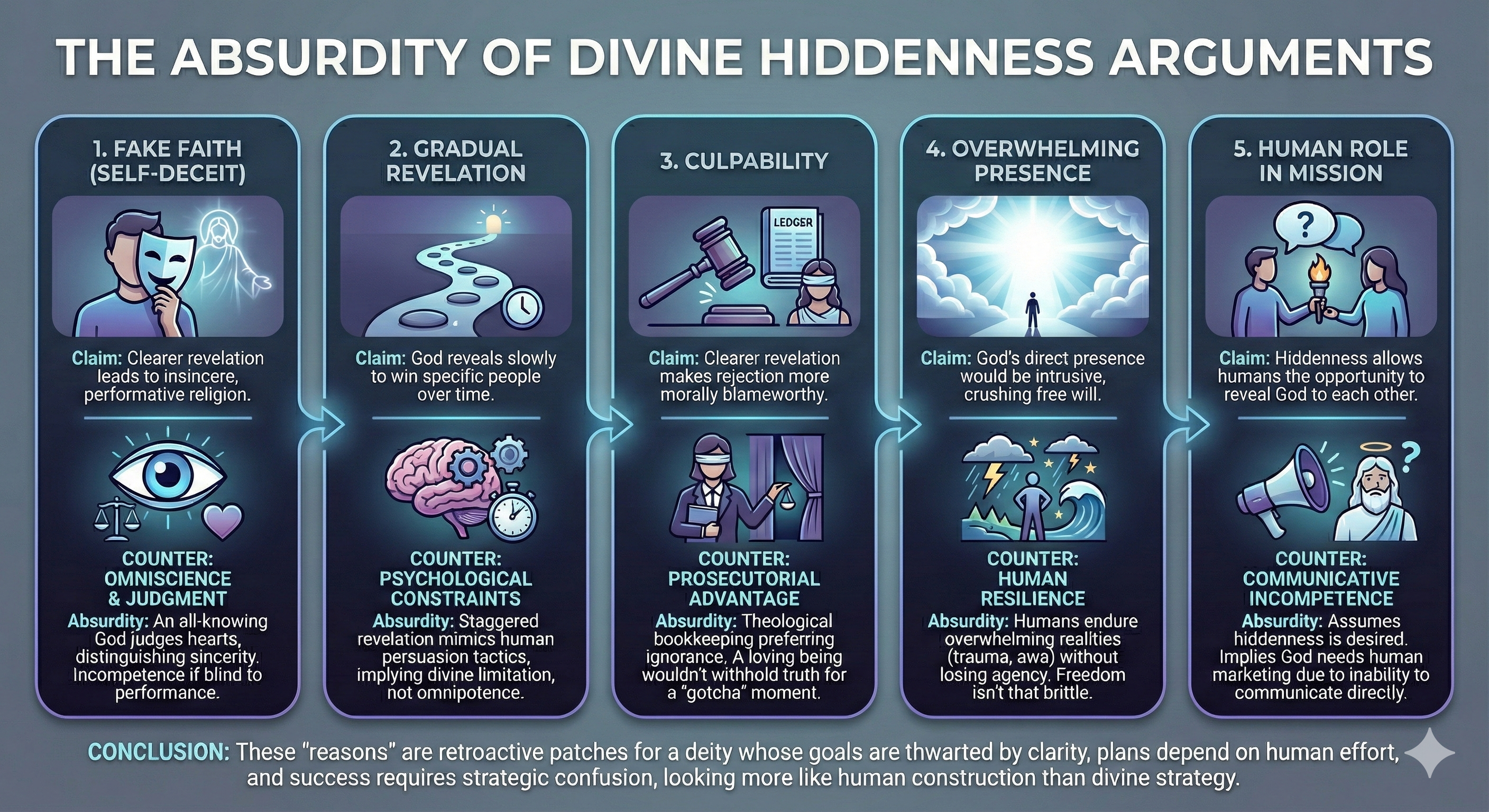 - Conclusion: Therefore, direct revelation from a personal God would not violate free will, and the absence of such encounters raises questions about why he remains hidden.