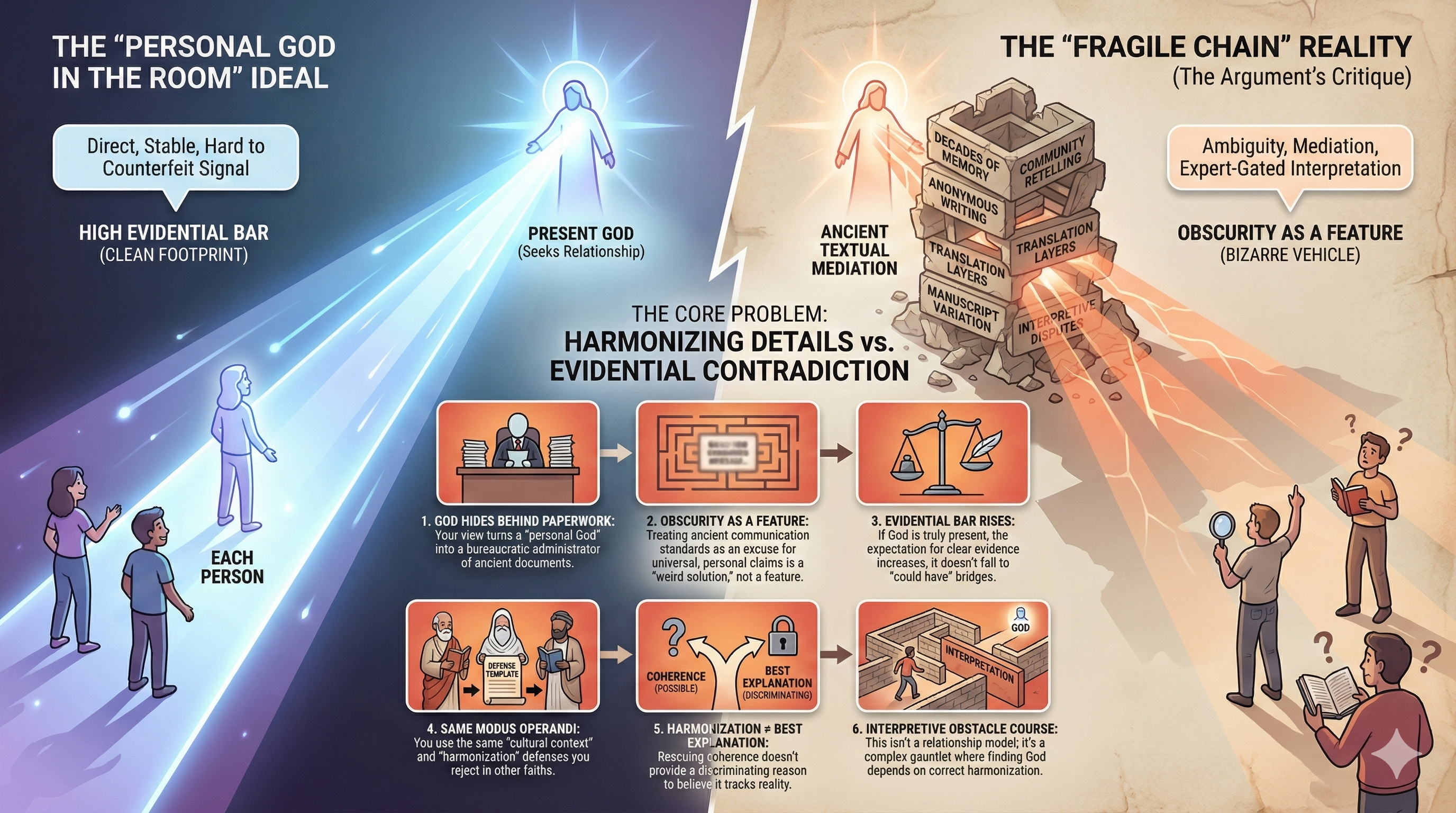 CLARUS: That could be true, but as rational beings, we’re bound to seek clarity where we can. If a personal God truly exists, I’d expect him to meet us halfway—not just with words on a page but with a presence that leaves no doubt.