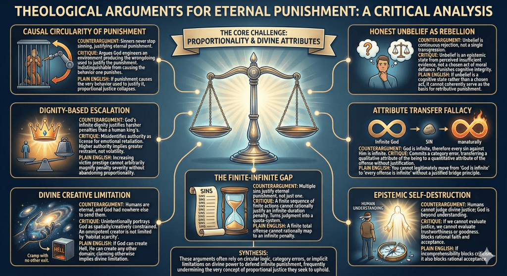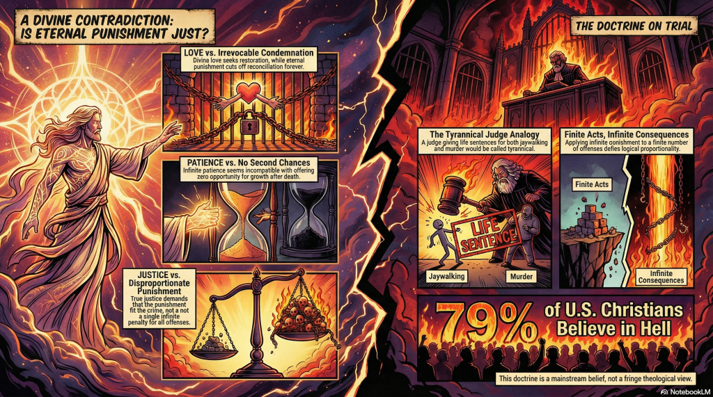• Conclusion: Eternal punishment is disproportionate to finite offenses and lacks logical coherence.