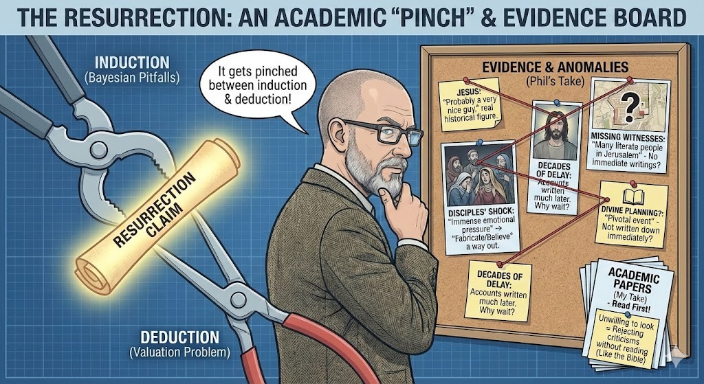 CLARUS: Skepticism is warranted when extraordinary claims are made. The evidence you mention is weak by historical standards, and even if it were stronger, natural explanations would still be more probable. Invoking the resurrection as the “best explanation” only works if one ignores the Bayesian improbability of supernatural events, the logical inconsistency of finite punishment substituting for eternity, and the cumulative plausibility of natural alternatives.