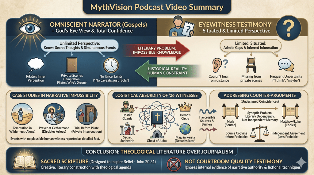 For someone to be legitimately called an “eyewitness”, all seven criteria must be met concurrently. Failure on any one—say, a long delay (Criterion 5) or reliance on a scribe (Criterion 4)—disqualifies the label. In a modern trial, a witness to a robbery on February 27, 2025, testifying on February 28 meets these standards: they saw it, were there, were sober, spoke directly, did so promptly, gave specifics, and weren’t coached. Contrast this with the Apostles: they may satisfy 1-3 in 33 CE, but 4-7 collapse under a 2,000-year chain of oral relays, Gospel edits, and manuscript variants. Their “testimony” reaches us as a mediated artifact, not a direct voice, rendering the term inapplicable today.