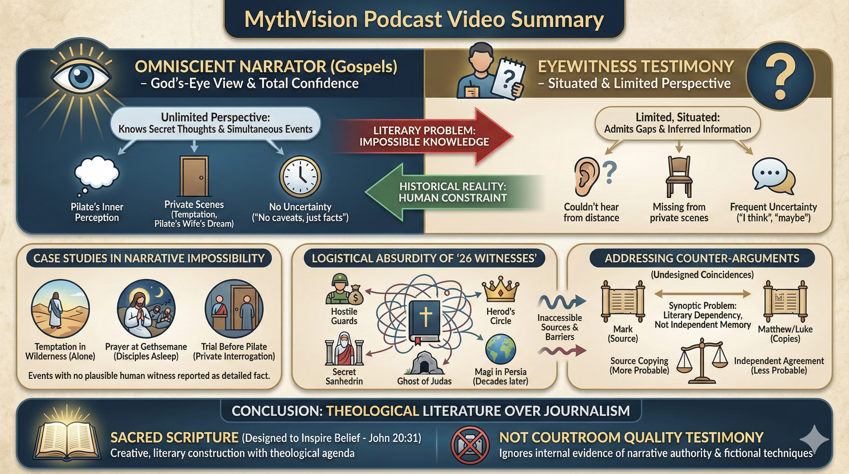 The Apostles may have been eyewitnesses in 33 CE under criteria 1-3 (sensory perception, presence, competence), though even these lack modern verifiability. However, criteria 4-7 (mediation, distortion, specificity, influence) fail outright for us in 2025. Their “testimony” arrives via a 2,000-year chain of intermediaries, edits, and inconsistencies—far from the direct, pristine standard required. Calling them “eyewitnesses” today isn’t just a stretch; it’s a claim that crumbles under rigorous scrutiny, leaving us with a historical narrative, not a living witness. Faith may sustain it, but evidence does not.