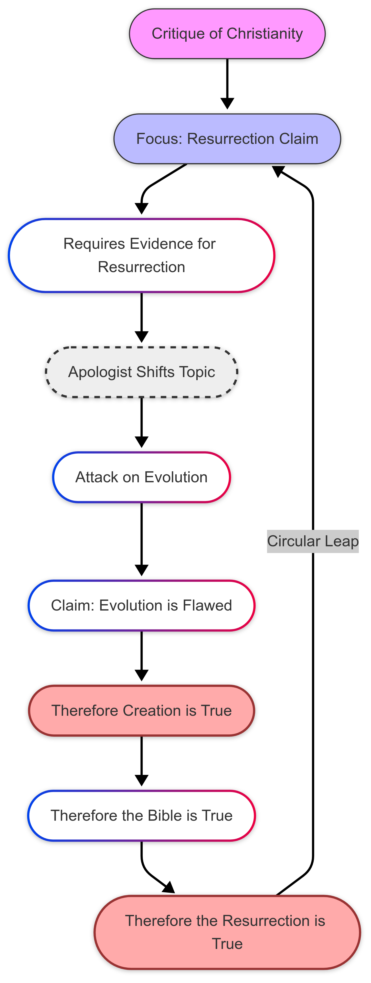 What makes this ideological system particularly resilient is its epistemic circularity. The Christian starts with belief in God, interprets evidence through assumptions drawn from that belief, and then points to that interpretation as confirmation of God.