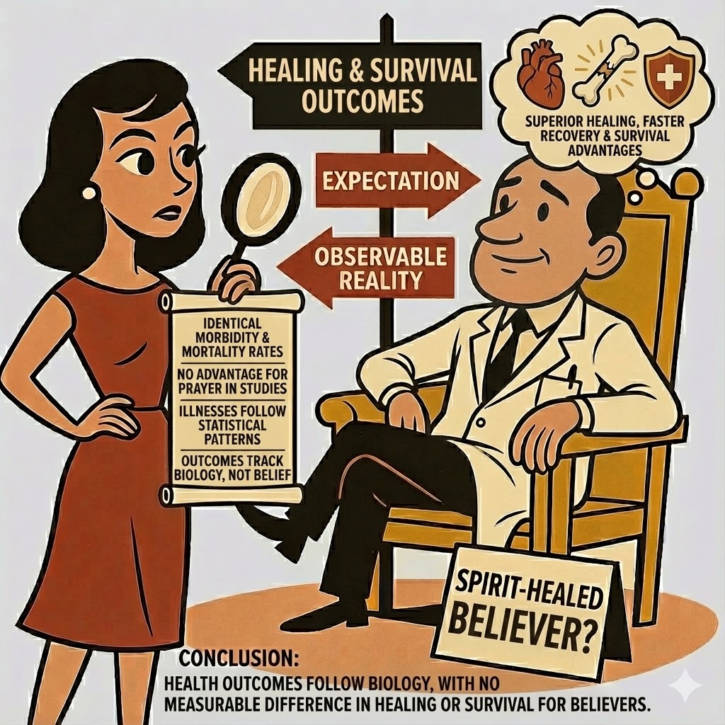 But when we move from assertions to measurable outcomes, a consistent pattern emerges: the promised supernatural advantages never materialize in any domain where they should be detectable. Across knowledge, healing, foresight, and innovation, believers exhibit the same cognitive, physical, and predictive limitations as anyone else.