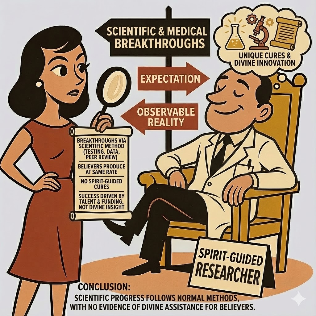 But when we move from assertions to measurable outcomes, a consistent pattern emerges: the promised supernatural advantages never materialize in any domain where they should be detectable. Across knowledge, healing, foresight, and innovation, believers exhibit the same cognitive, physical, and predictive limitations as anyone else.