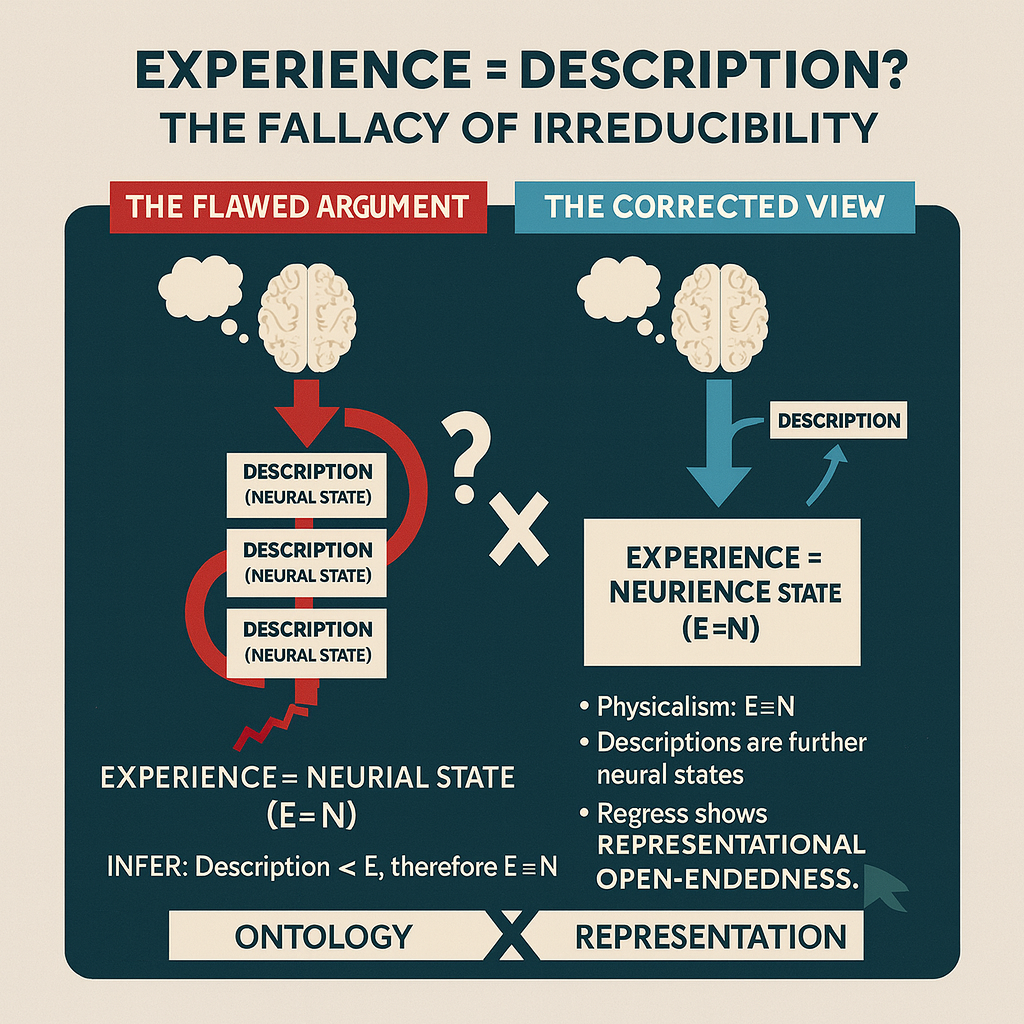 This post is a response to an argument for irreducibility that relies on an equivocation between an experience and a description of an experience. Making this explicit exposes the failure.