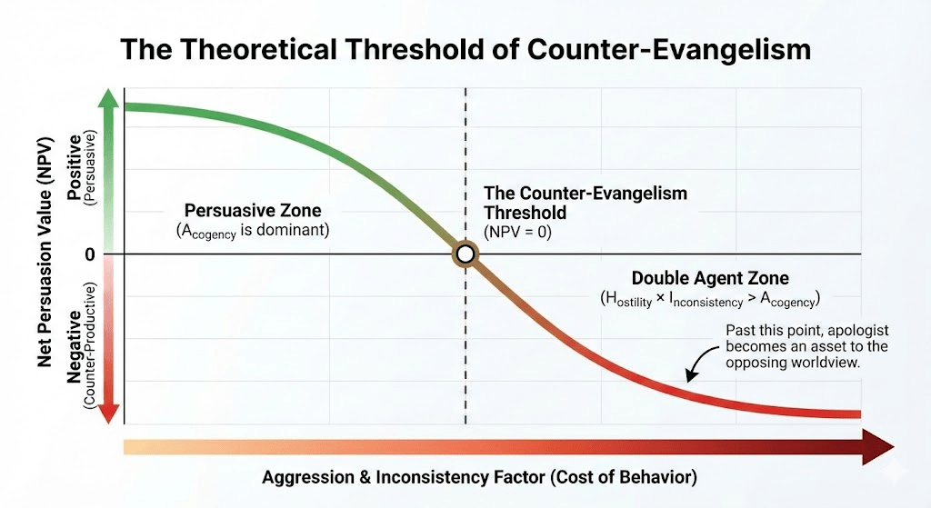 When this inequality holds true, the becomes negative. The interaction does not merely fail to persuade; it actively subtracts credibility from the Christian worldview.