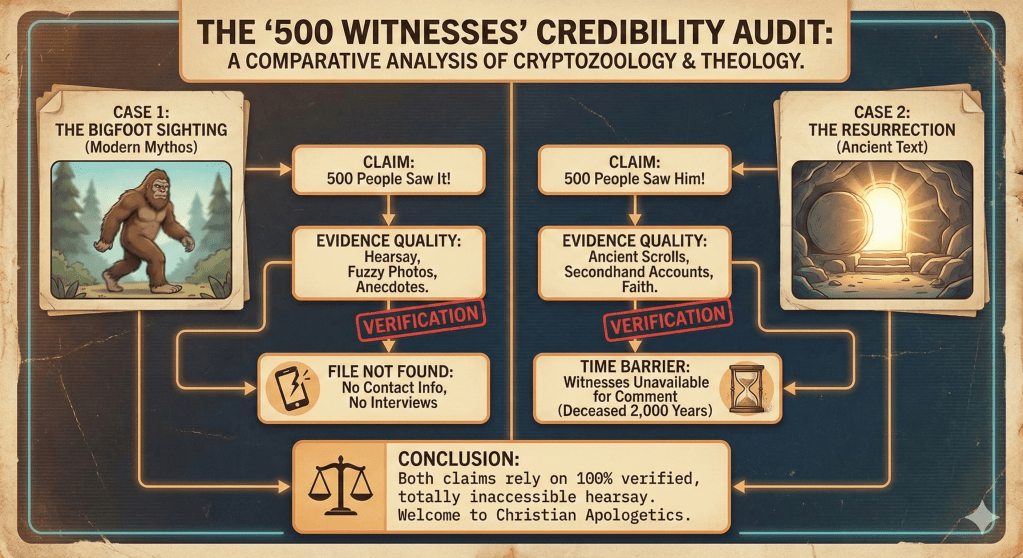 ✓ Textual claim ≠ independent testimony: what we have is Paul reporting that Jesus “appeared to more than five hundred” (1 Cor 15:6). That is not the same thing as 500 preserved depositions, names, interrogations, or cross-checkable reports. ✓ Serious critical scrutiny exists even among NT scholars: Bart Ehrman discusses the evidential gap between the tradition Paul reports and actual eyewitness evidence accessible to historians. (The Bart Ehrman Blog) ✓ “Hostile witnesses couldn’t disprove it” is asserted, not demonstrated: you’d need identified hostile sources, their arguments, and why they fail. The text offers none—just a confidence posture.