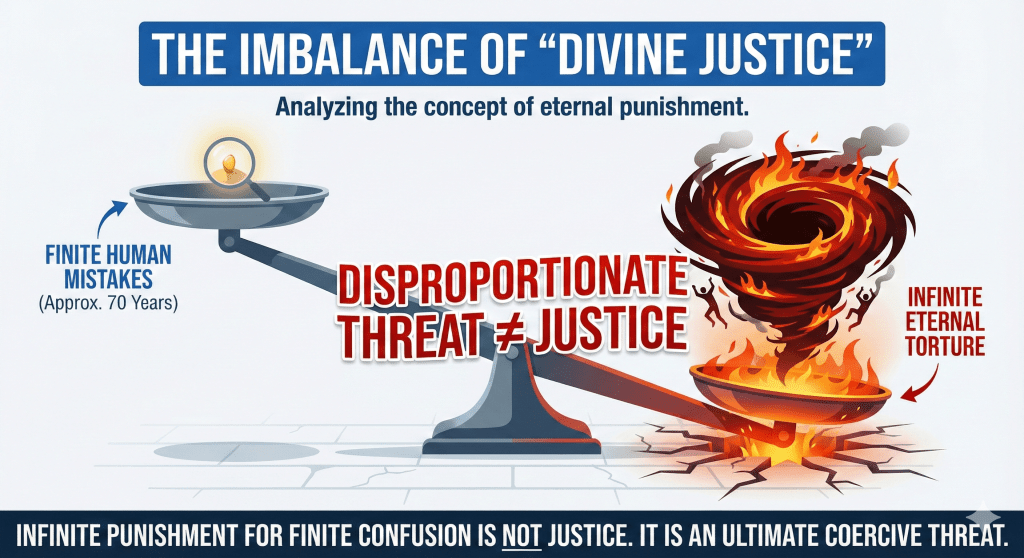 ✓ “Just” is asserted, not defended: calling infinite punishment “just” doesn’t make it so; it requires an argument that connects finite human actions/limitations to infinite consequences. ✓ “Hell is chosen” hides coercive structure: if the options are “accept X on threat of infinite loss,” describing the outcome as “chosen” is rhetorically convenient but philosophically thin. ✓ Substitution claim needs coherence work: “God the Son took hell in your place” raises internal accounting questions (what exactly is transferred, how, and why is a finite event equal to infinite penalty) that the text simply declares solved.