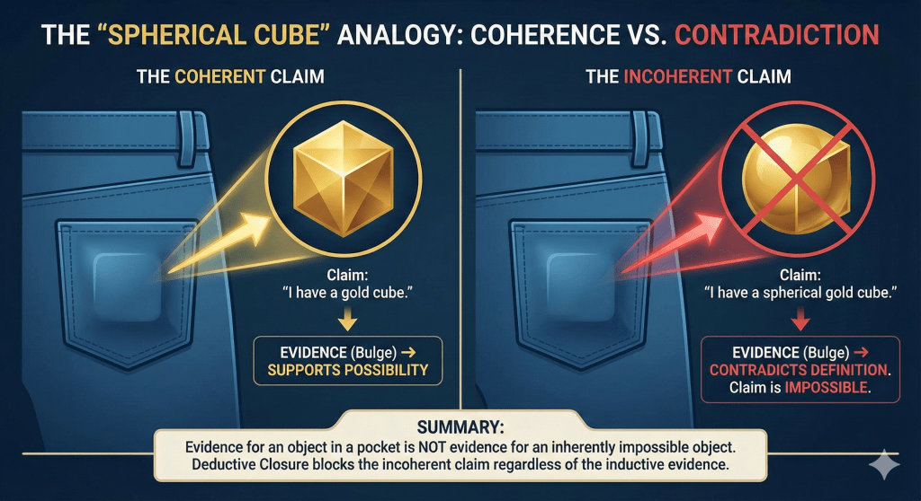 This post is not a presentation of those deductive demonstrations. This post is about the methodological point: why deductive incoherence, if established, shuts down inductive confirmation for that incoherent target.