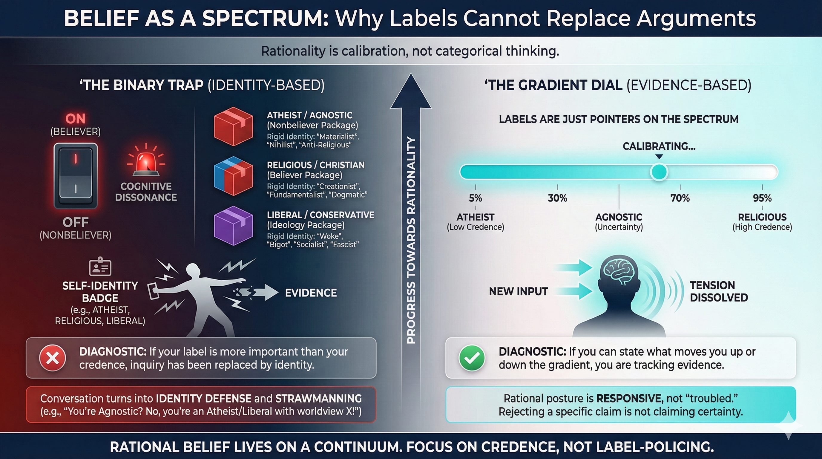 This matters because many belief-based labels pretend the mind is a switch. They suggest that the rational posture is to pick a camp and then hold that identity like a passport.