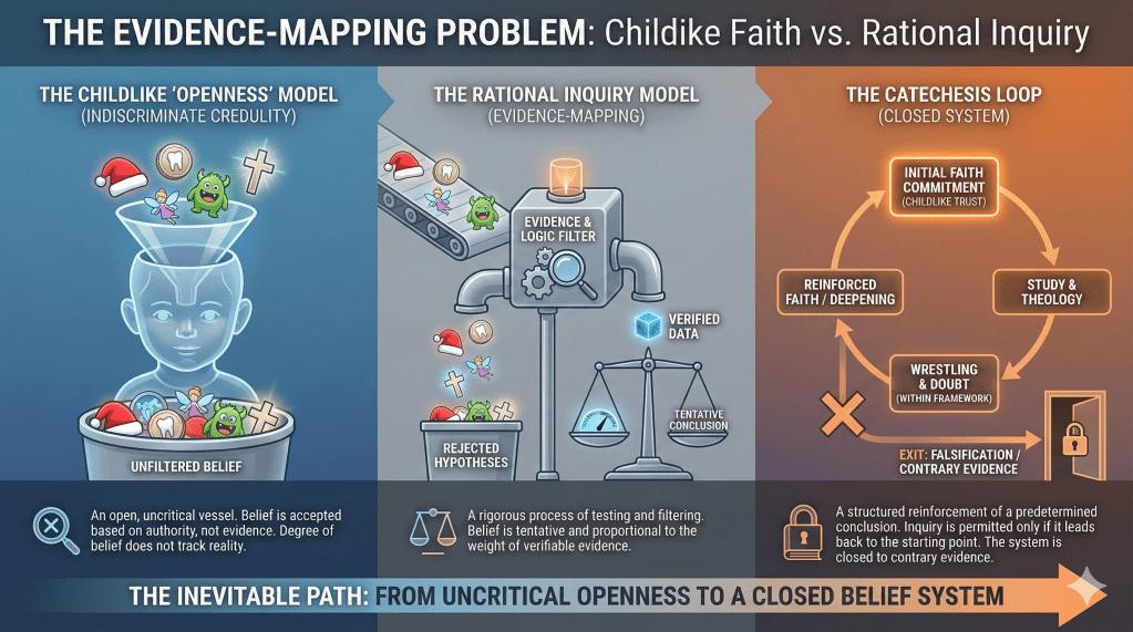 When apologists valorize this state as the ideal starting point for faith, they are conceding a devastating point: Christian belief is rooted in a pre-critical stage of cognitive development where belief does not track with reality.