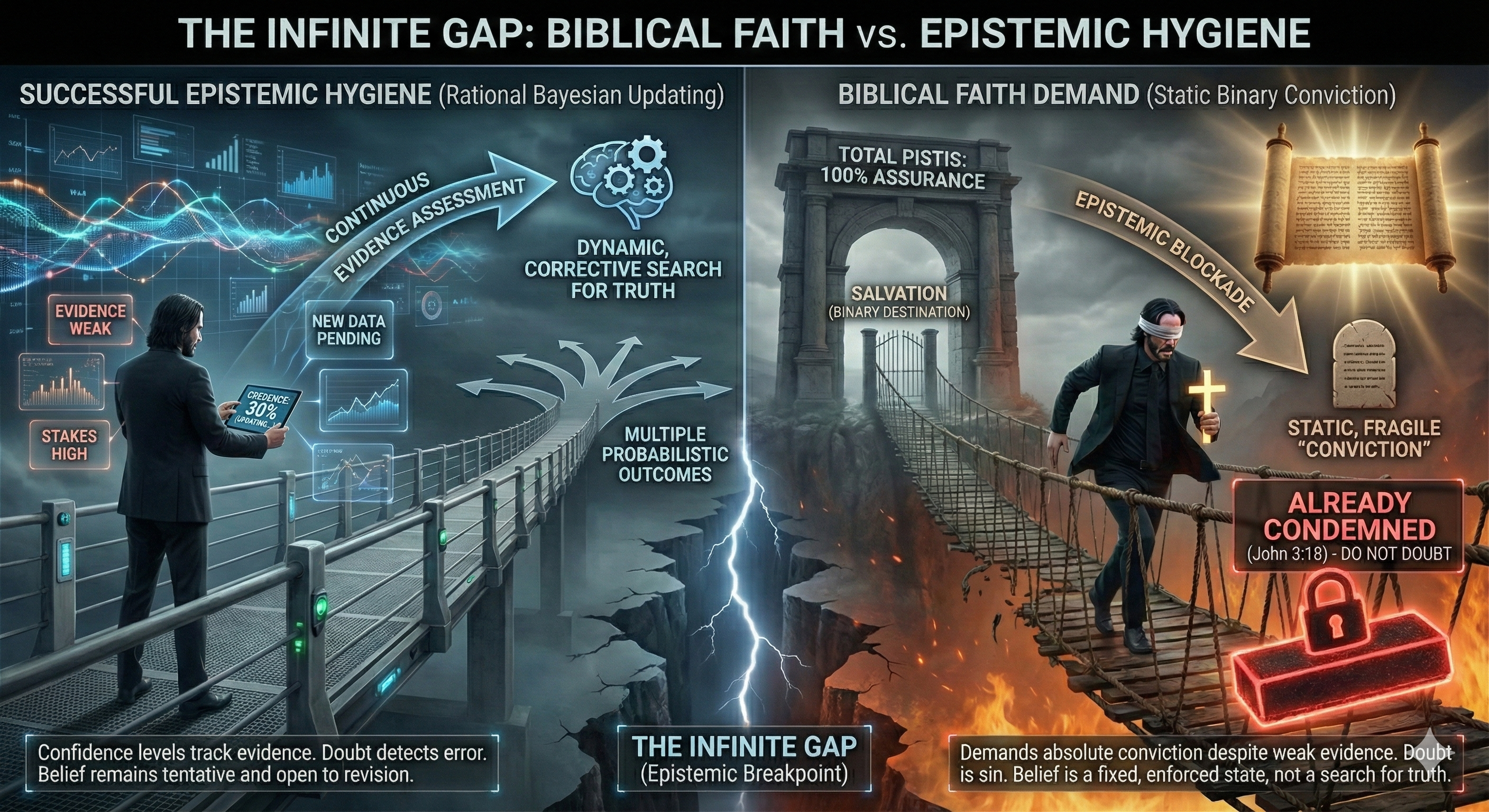 The New Testament narrative, from Jesus’ praise of those who believe without seeing to Paul’s encouragement to walk by faith and not by sight, fundamentally rejects the idea that belief must be proportional to the evidence. Instead, faith is celebrated as an irrational commitment to God’s promises, one that requires believers to abandon their dependence on empirical proof. This is the core theological tension between faith and reason, and it cannot be resolved by attempting to argue that biblical faith is aligned with rational, evidence-based belief.