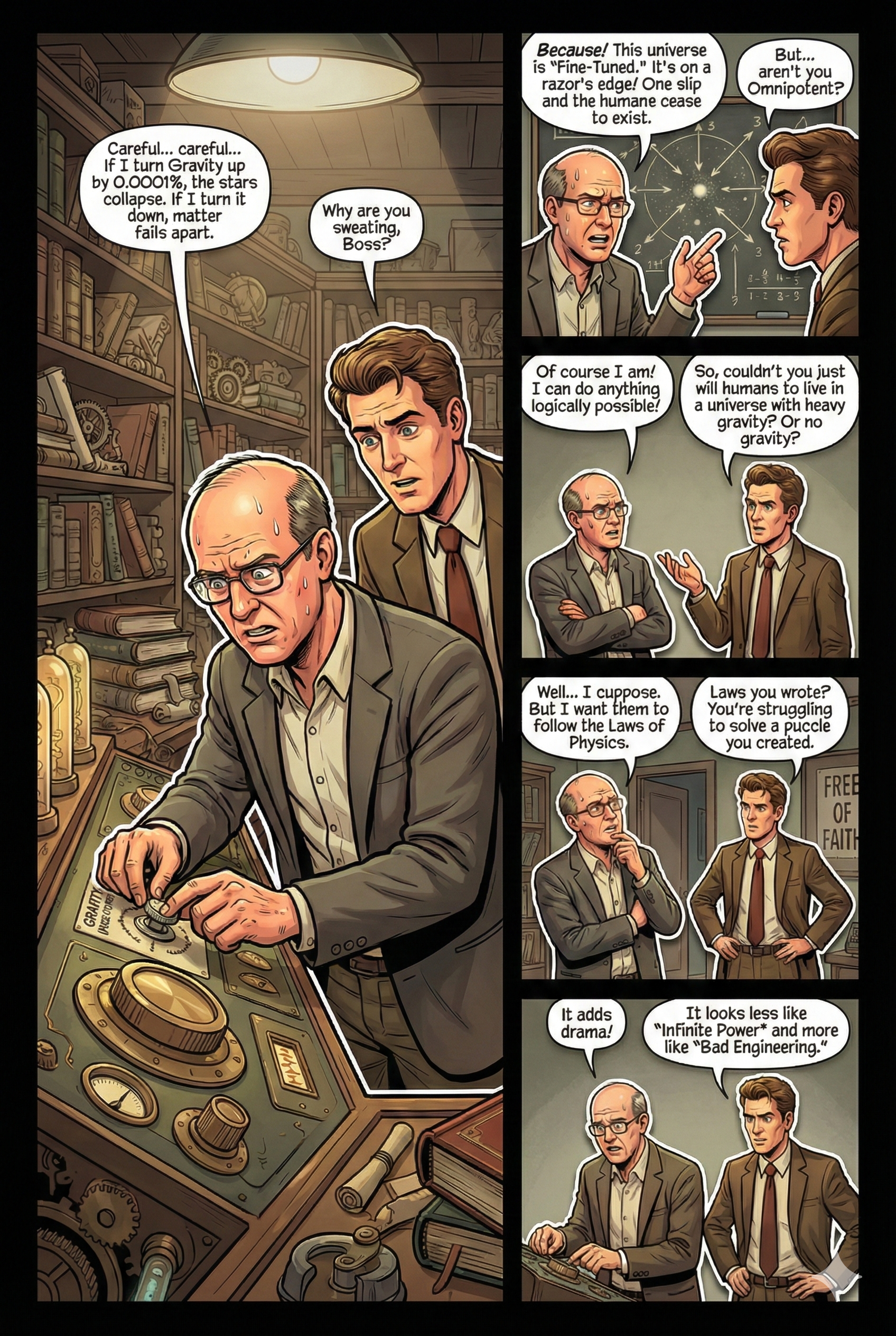 - Implicit Limitation: The fine-tuning argument secretly presumes that God must rely on fixed laws—a limitation incompatible with classical definitions of divine omnipotence.