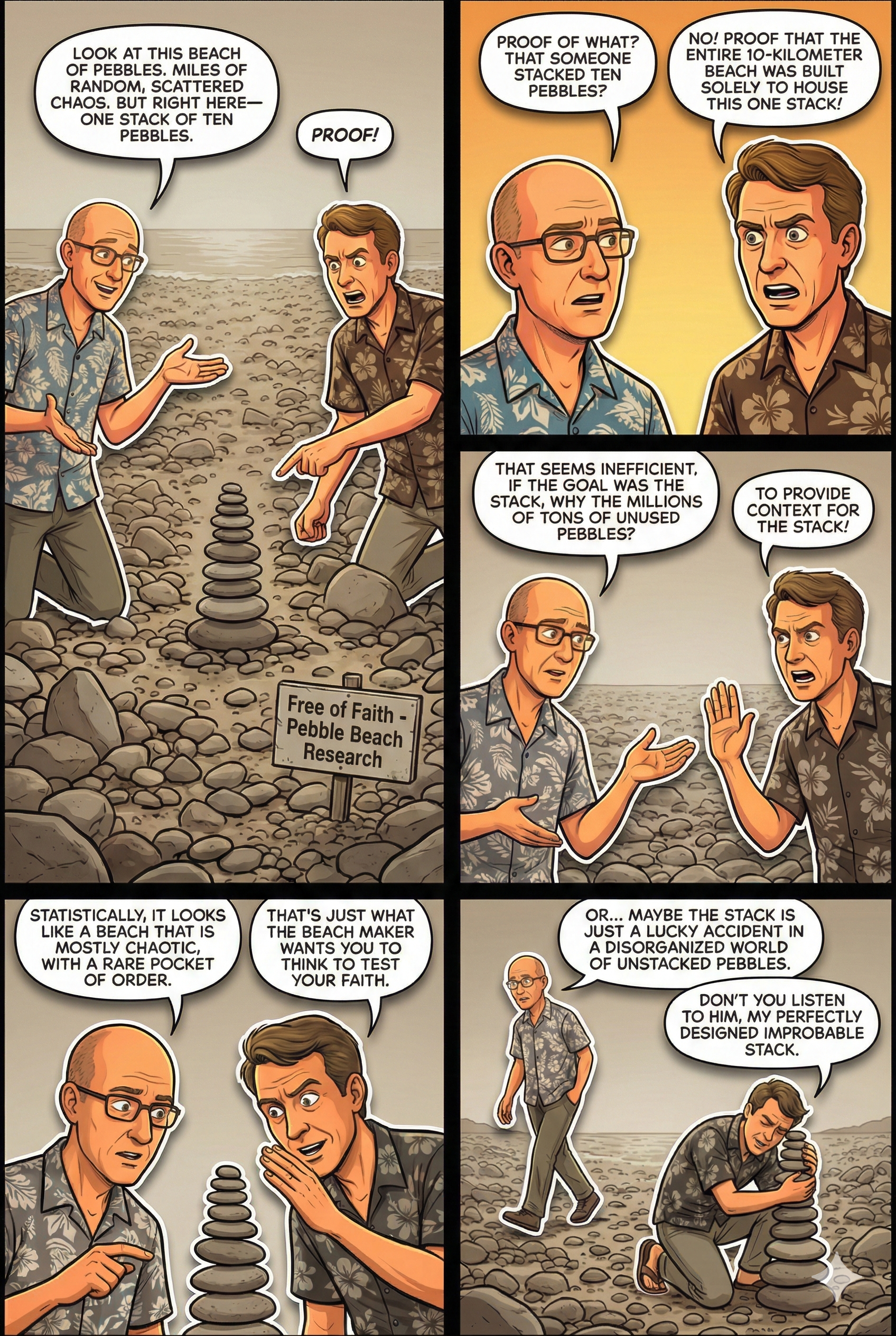 - Eroding the Probability Argument: If a creator is unconstrained, probabilities and narrow ranges no longer matter. Presenting them as the evidence for design fails to acknowledge that no range is too narrow—or too broad—for an omnipotent creator.