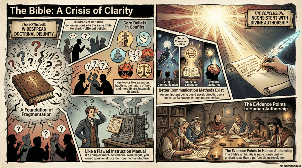 The defense of biblical inerrancy overlooks a critical flaw: internal contradictions within its concepts render the notion incoherent, regardless of textual accuracy. Examples include the contradiction between divine love and commanded genocide, free will versus foreordination, and the clash between faith and evidence. These logical inconsistencies negate the divine origin…