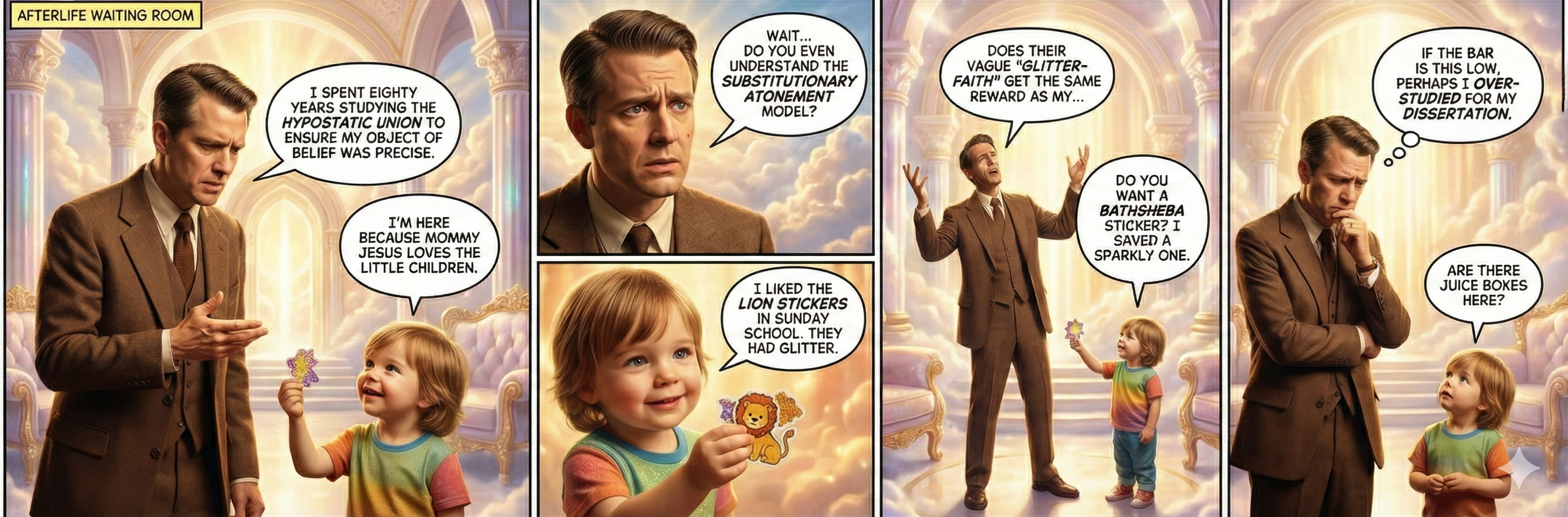 A child who believes in Jesus because “Mommy says so” likely lacks understanding of complex doctrines like atonement or original sin. Is such belief sufficient for redemption, or must the believer grasp more nuanced theological concepts? The lack of consensus on the object of belief compounds the problem.