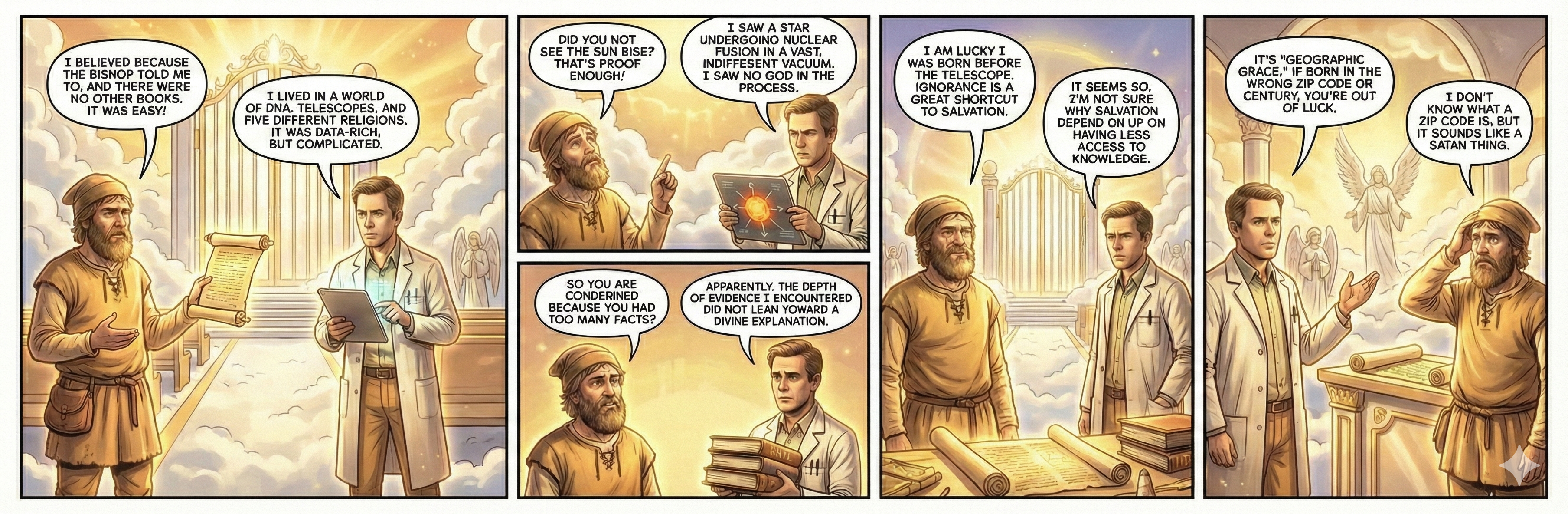 A rational and fair system of judgment would necessarily account for these dimensions, aligning divine justice with the realities of human cognition. Until such a framework is articulated, the binary nature of final judgment remains an indefensible oversimplification.