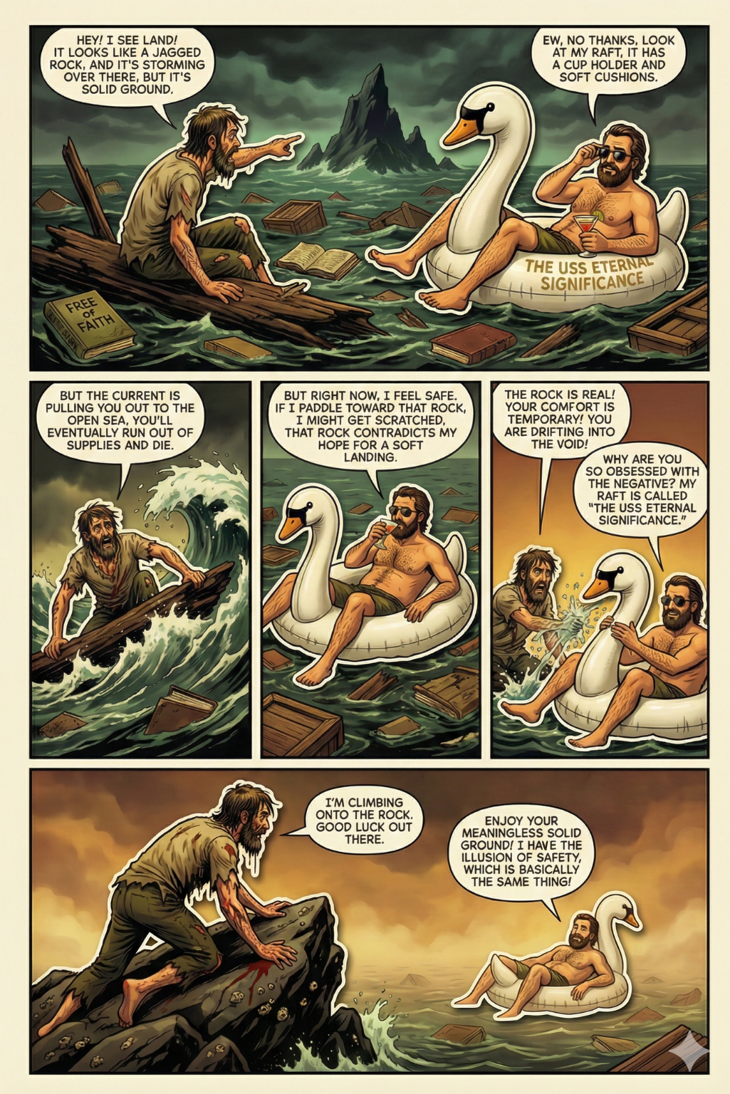 An apt analogy is a person clinging to a life raft in turbulent waters. While the raft provides temporary comfort, it may drift further from shore, prolonging the struggle. Similarly, hope-driven belief offers immediate emotional solace but often steers seekers away from the stable ground of reality.